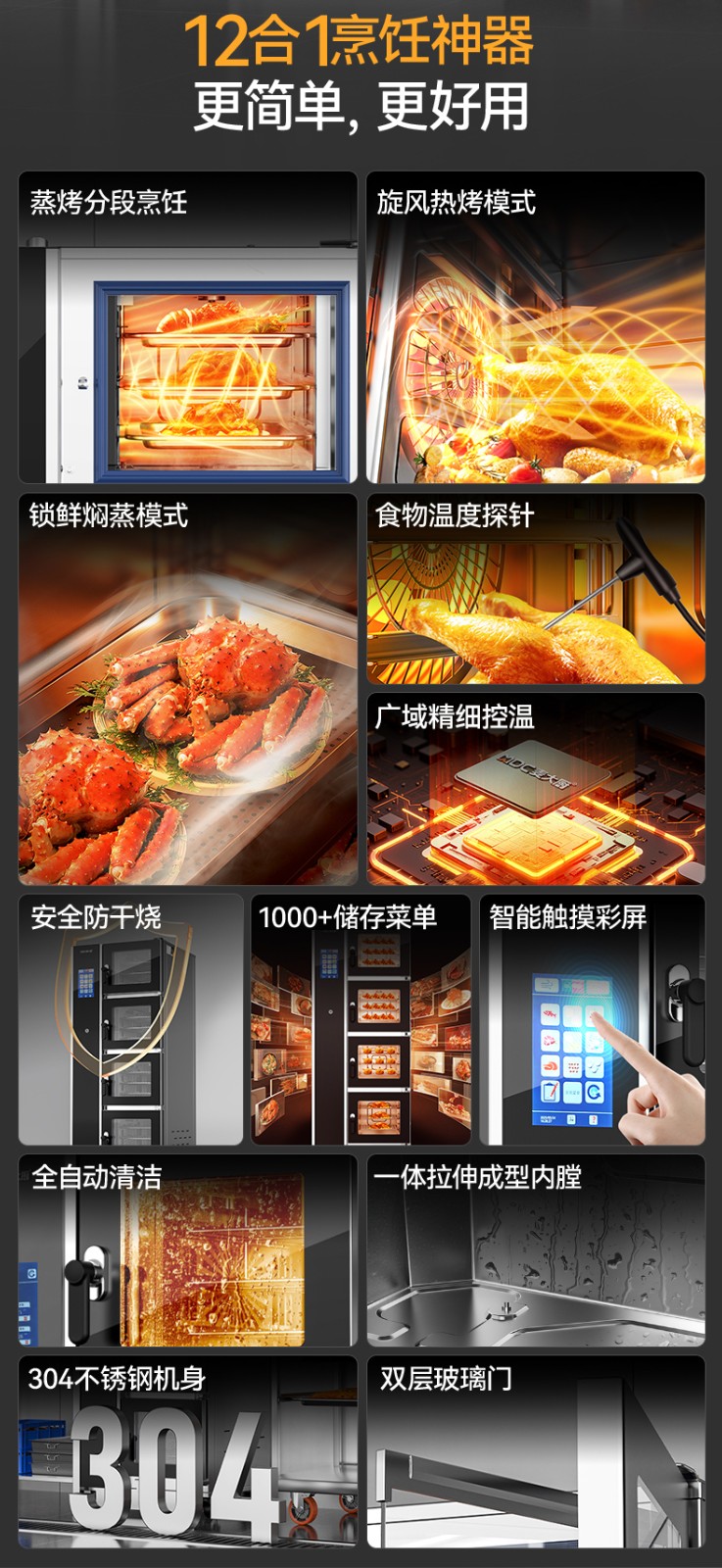麥大廚ZKA19系列4柜組合觸屏式商用萬能蒸烤箱24.8kW