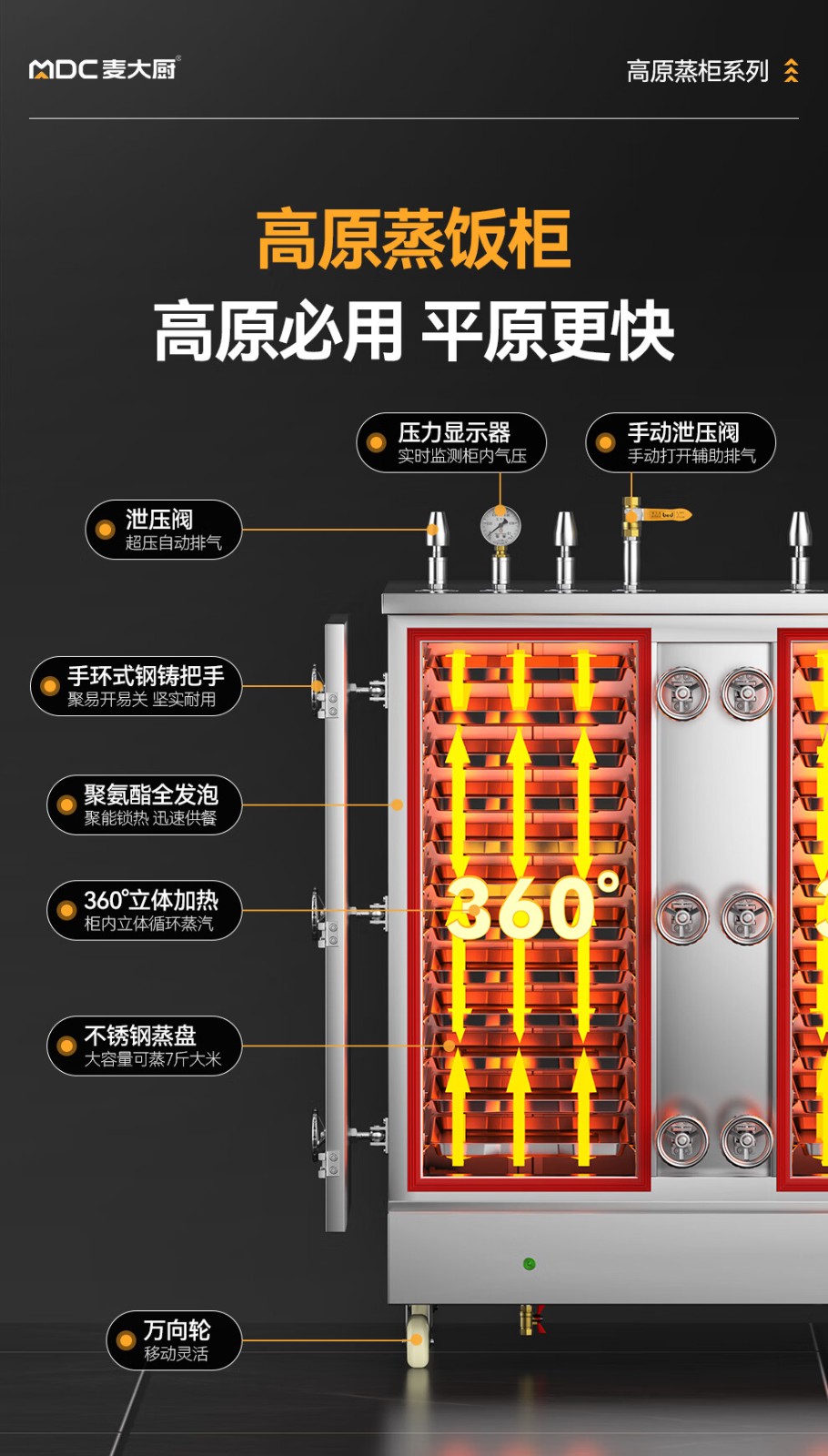 最大蒸飯量:80-100kg - 更多MDC商用高原蒸柜規(guī)格咨詢在線客服