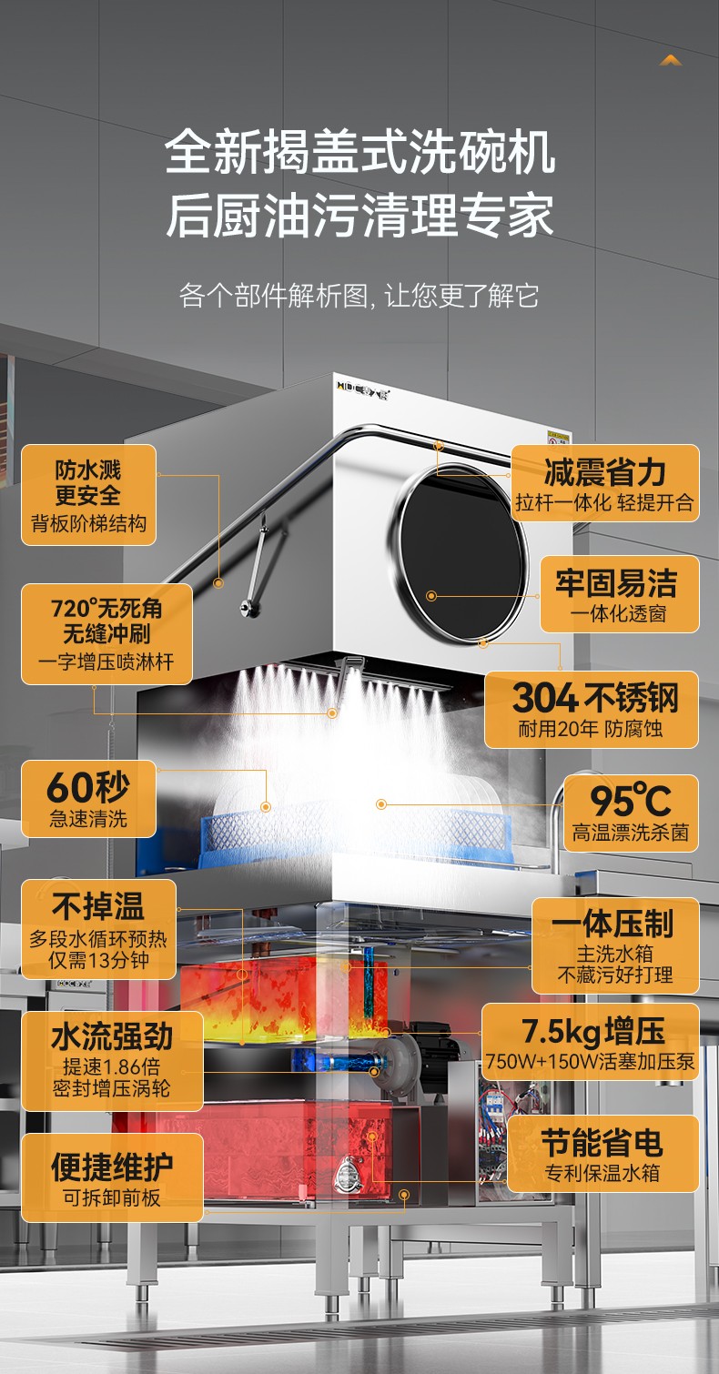 麥大廚3.0連鎖熱銷款雙泵透窗揭蓋式洗碗機商用12kw